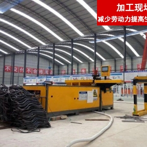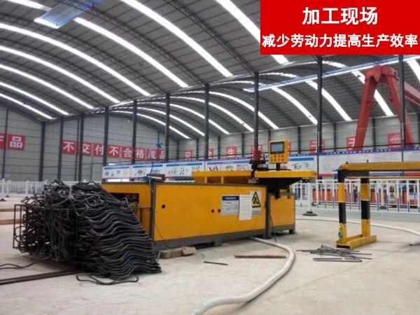 格柵拱架作為隧道拱架的一種常用于公路鐵路隧道,礦山巷道施工的初期支護(hù)中,而 8 字筋是格柵拱架中的重要組成,其形狀復(fù)雜, 數(shù)量巨大,加工難度大,工人勞動(dòng)強(qiáng)度高。濟(jì)寧市旭輝數(shù)控機(jī)械有限公司一直致力于數(shù)控鋼筋彎箍機(jī)的研制,我們針對(duì) 8 字筋的特殊形 狀和要求,在原基礎(chǔ)上加以改進(jìn),讓原本復(fù)雜的加工變得更加簡(jiǎn)單、標(biāo)準(zhǔn)、節(jié)能。我們深入加工現(xiàn)場(chǎng)了解傳統(tǒng)加工的諸多難處, 在設(shè)計(jì)當(dāng)中加入現(xiàn)代化制造的先進(jìn)理念和元素,那就是精益化生產(chǎn), 各個(gè)工序的產(chǎn)品沒有堆積(不占地方),產(chǎn)品不需要人力運(yùn)轉(zhuǎn)運(yùn)輸, 讓我們生產(chǎn)的產(chǎn)品意義上的流動(dòng)起來(lái),讓我們的生產(chǎn)現(xiàn)場(chǎng)空間更好的利用,整個(gè)生產(chǎn)線整潔和諧,企業(yè)形象得到根本上的改善。
